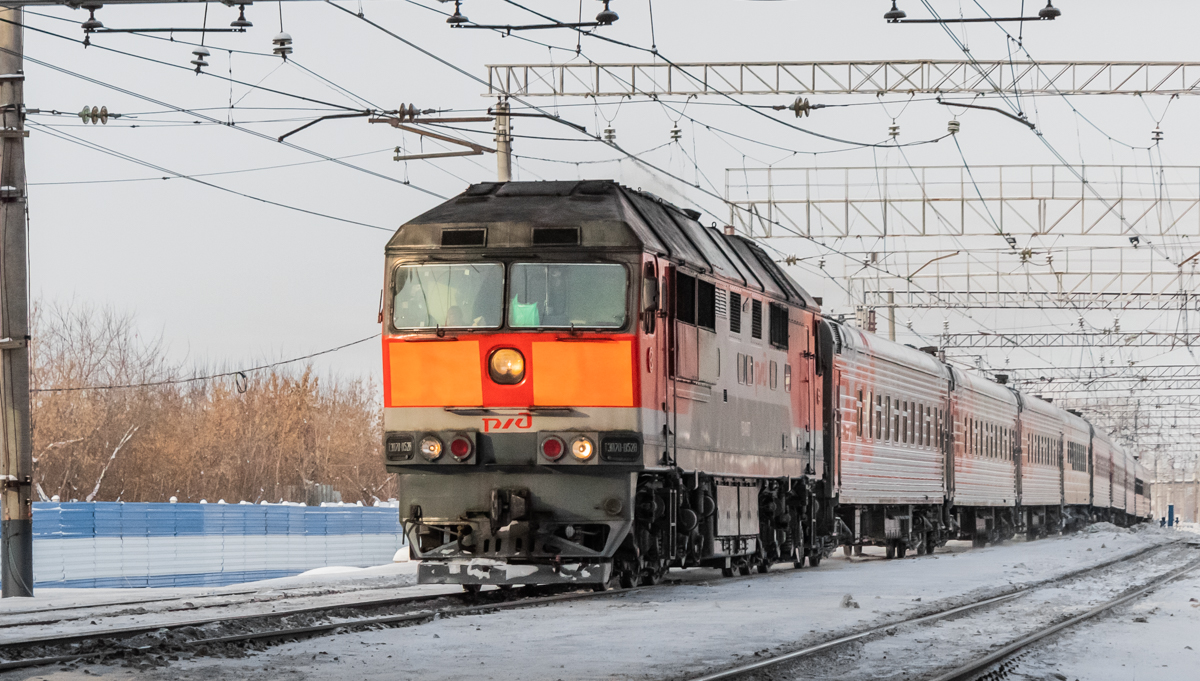 ТЭП70-0258 с поездом №110Э Москва - Новый Уренгой следует по станции Тюмень.