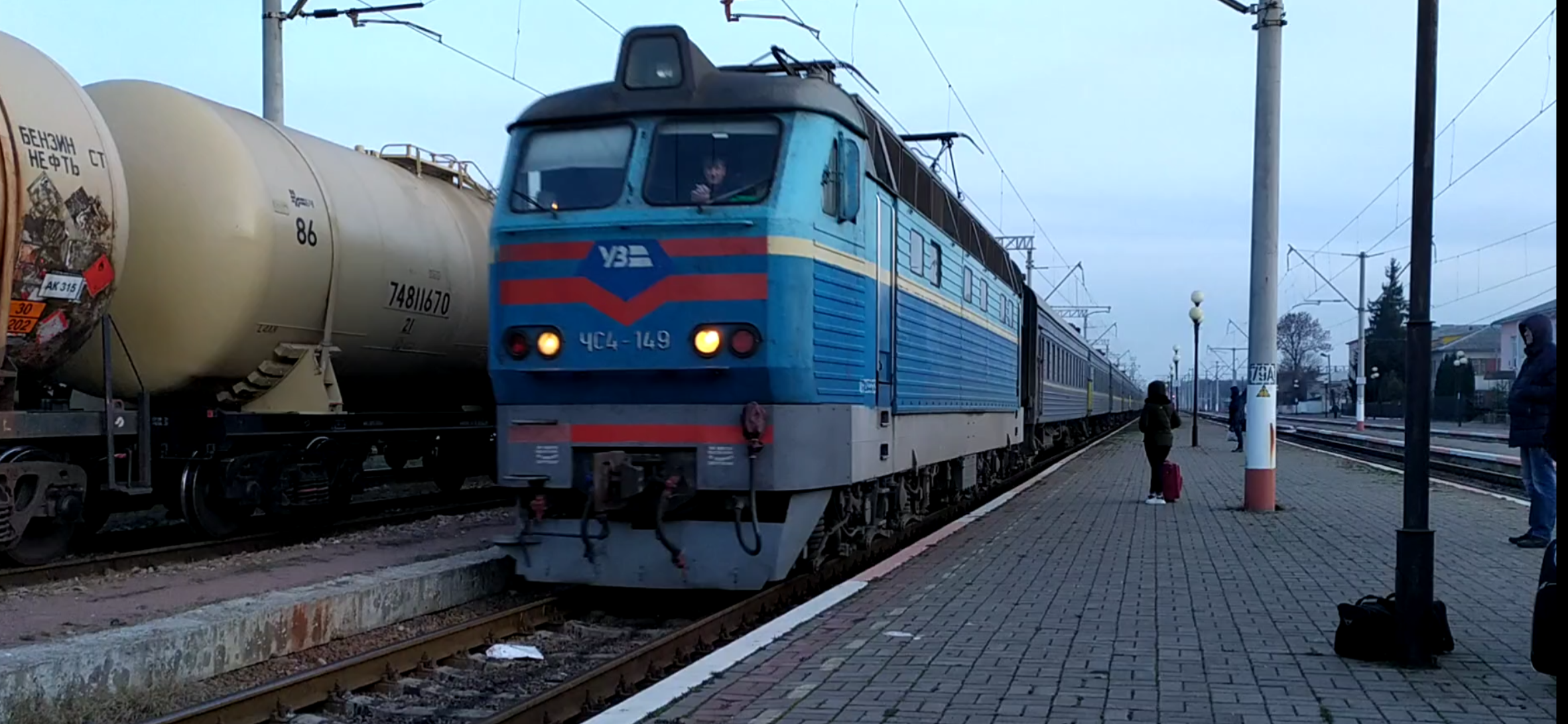 ЧС4-149 с пассажирским поездом №141 Бахмут-Львов прибывает на станцию Житомир. Юго-западная железная дорога "УЗ".