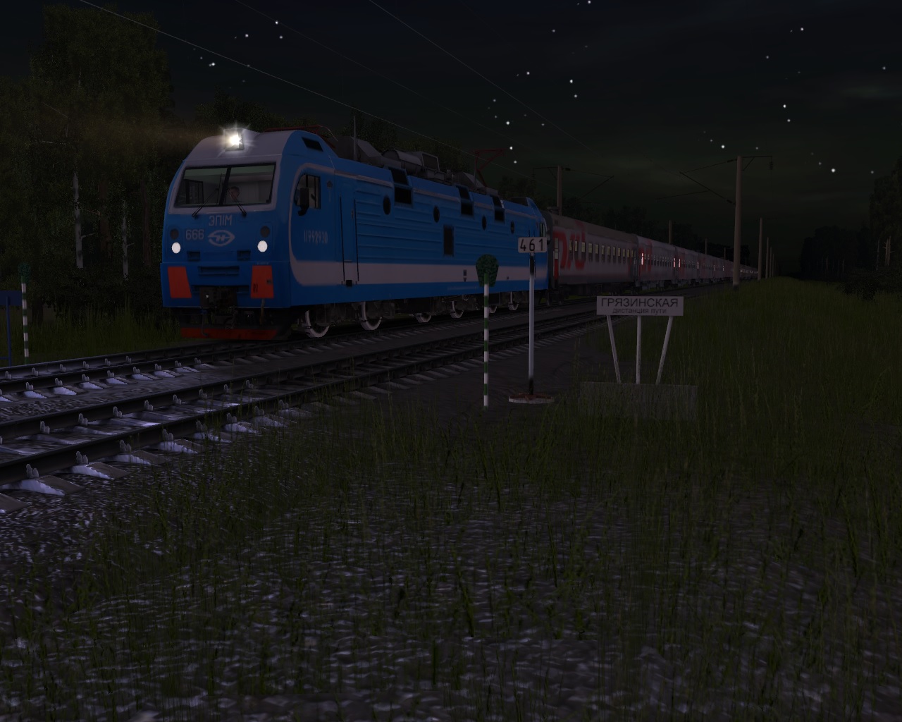 ЭП1М-666 с поездом 124В Белгород - Новосибирск. Перегон Грязи-Воронежские - Песковатка (карта "Родина").