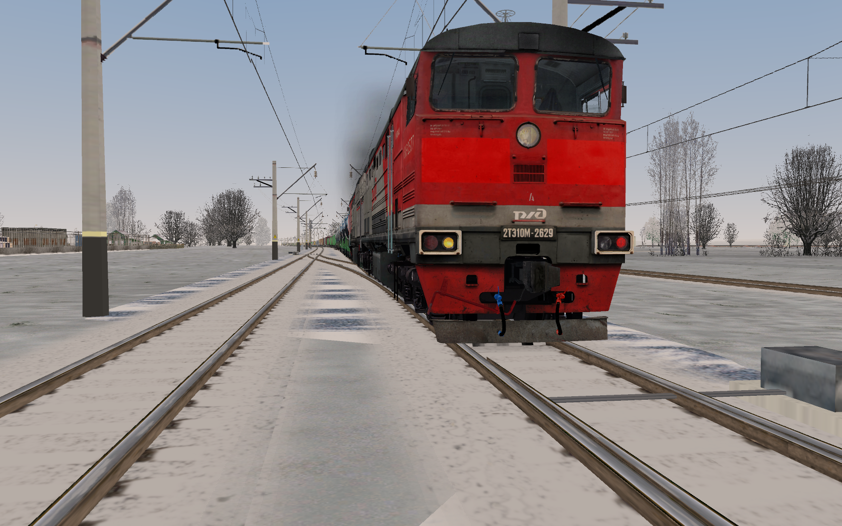 2ТЭ10М-2629 следует по неправильному пути, под управлением машиниста I класса Субботина Станислава. Следует на станцию Вильно.